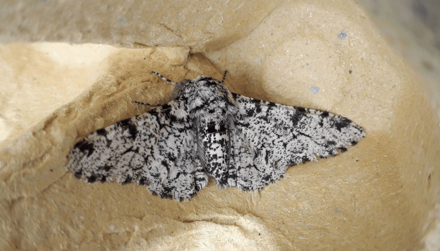 The Poplar Hawk-Moth (left) is one of our biggest moths! It’s a real gentle giant and doesn’t have working mouthparts so it lives off its fat reserves from its caterpillar days. The Peppered Moth (right) can also come in a darker form which evolved to blend in with the soot in cities!